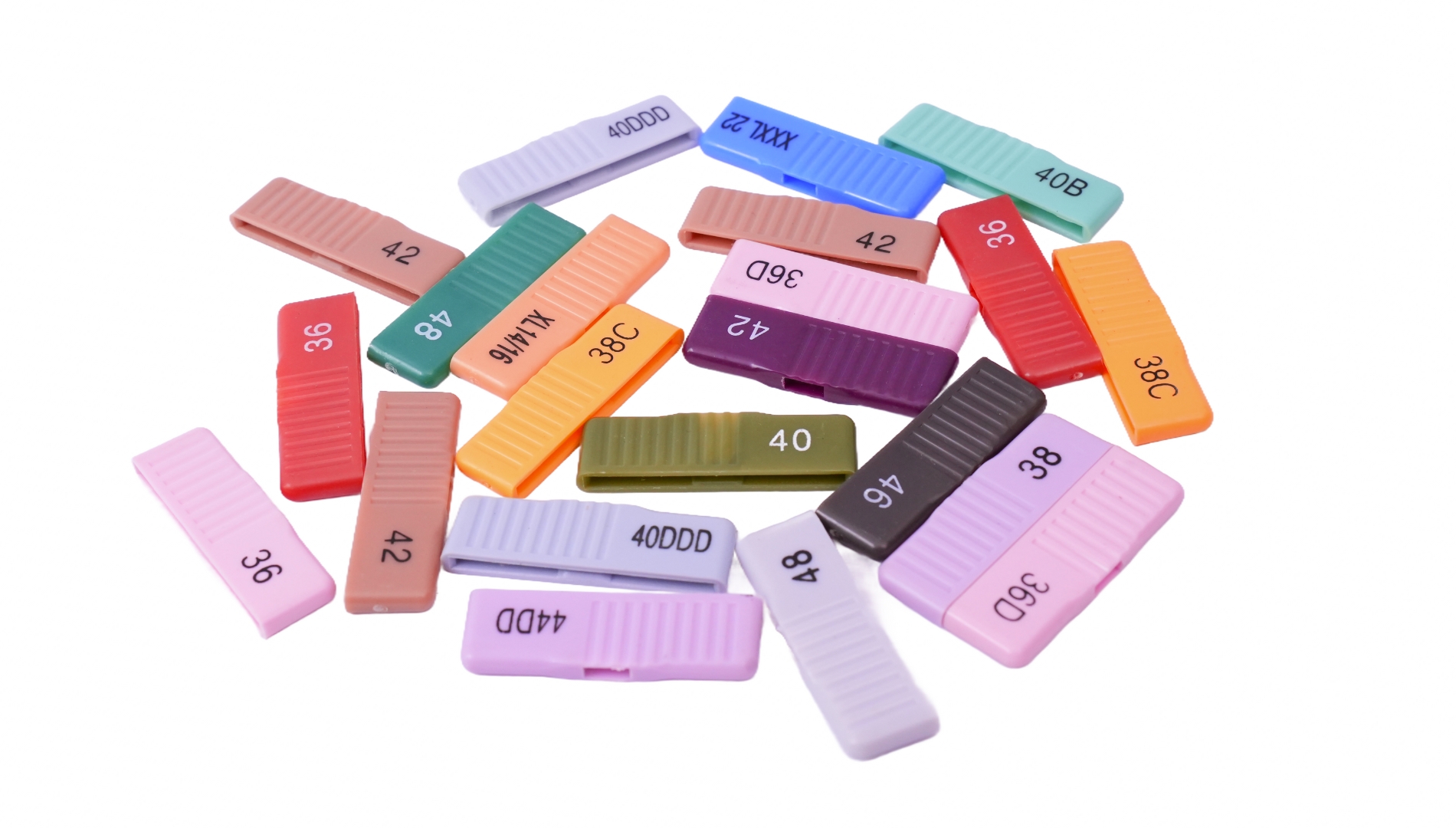 Our high-quality SIZER accessories are designed to fit seamlessly onto plastic hangers, making garment size identification easier and more efficient. These sizers ensure clear visibility of size information at a glance. Available in a variety of colors and sizes.